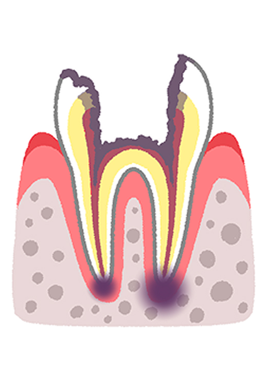 神経が壊死し、歯の根の先に炎症や膿がたまっている状態です。